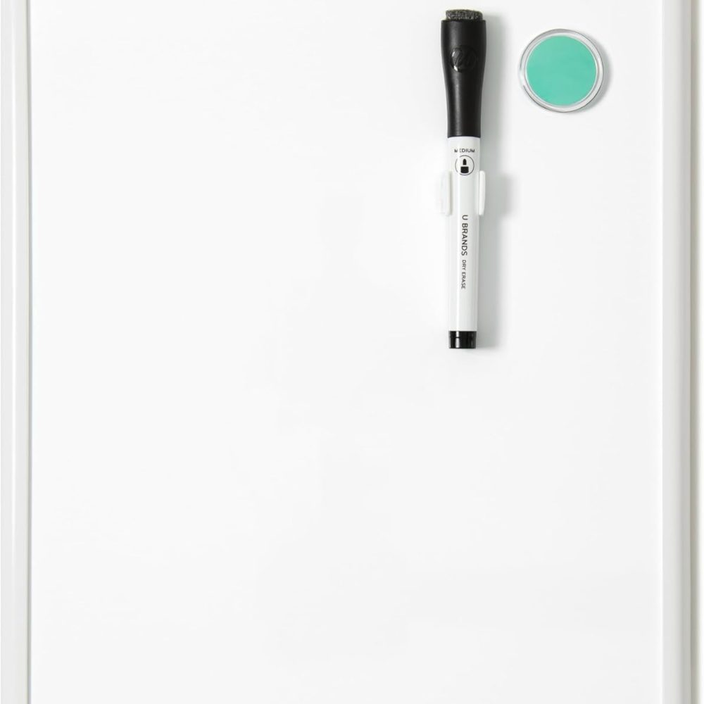 Introducing the U Brands Contempo Magnetic Dry Erase Board, a sleek and stylish addition to your workspace or home office. Measuring at 11”x14”, this whiteboard is the perfect size for jotting down notes, reminders, or creative ideas. The modern white frame adds a touch of elegance to any room, while the magnetic surface allows you…