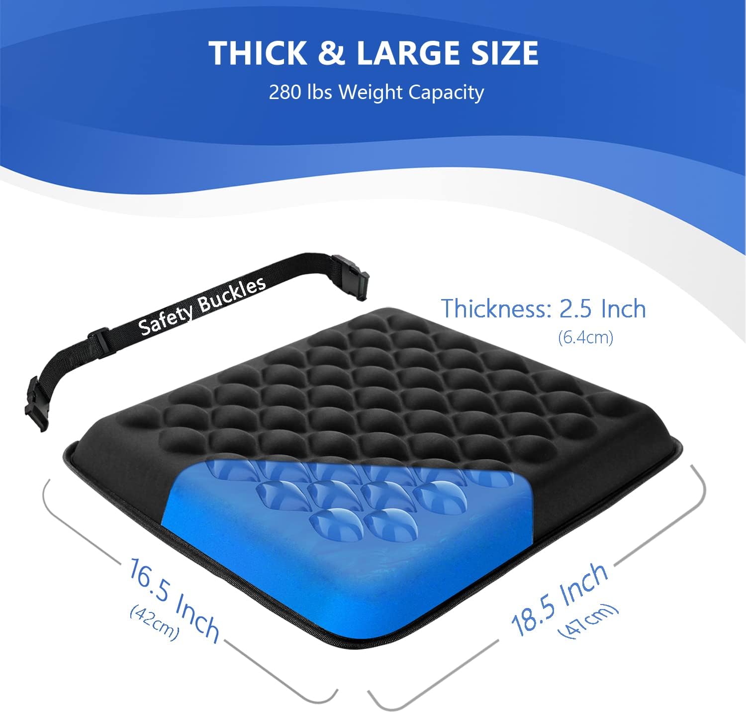 Measuring at 18.5″x 16.6″, these thick cushion pads are the perfect assistants for lifting your comfort levels in various settings, including trucks, cars, mobility scooters, wheelchairs, dining chairs, and sofas. Whether you’re working long hours at the office or embarking on a road trip, these chair cushions will ensure you stay comfortable and pain-free throughout the day.